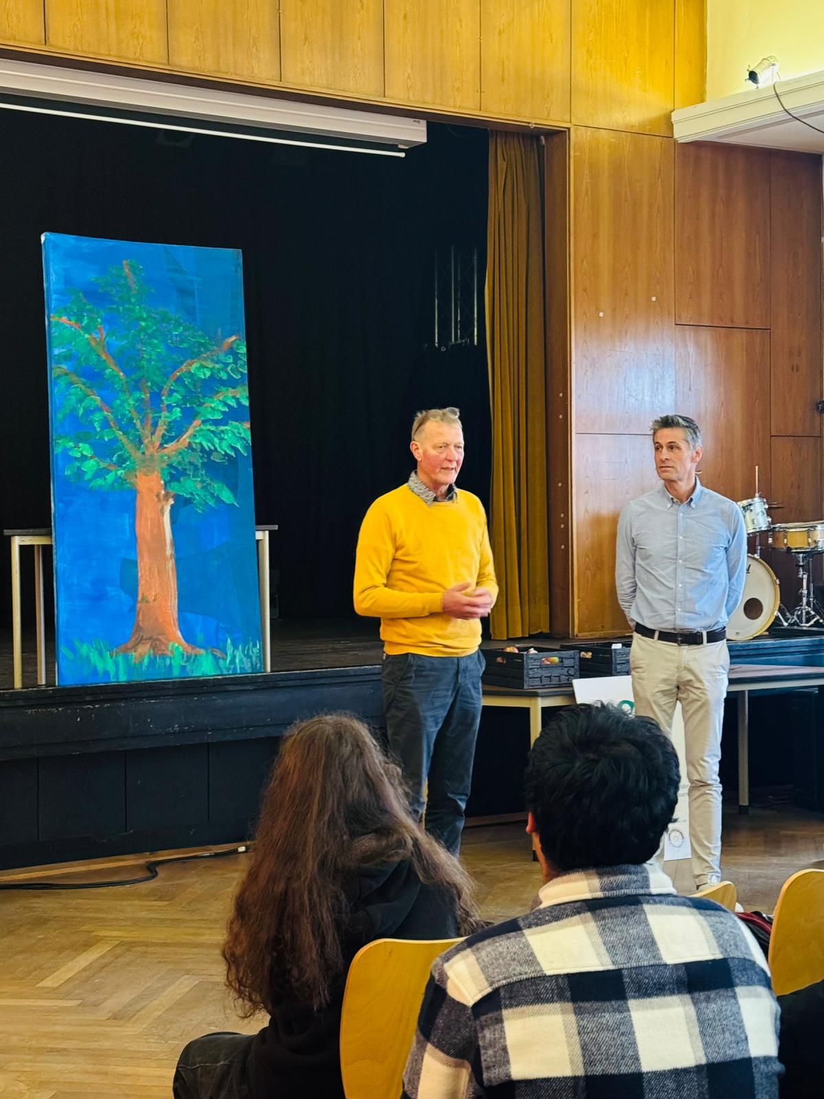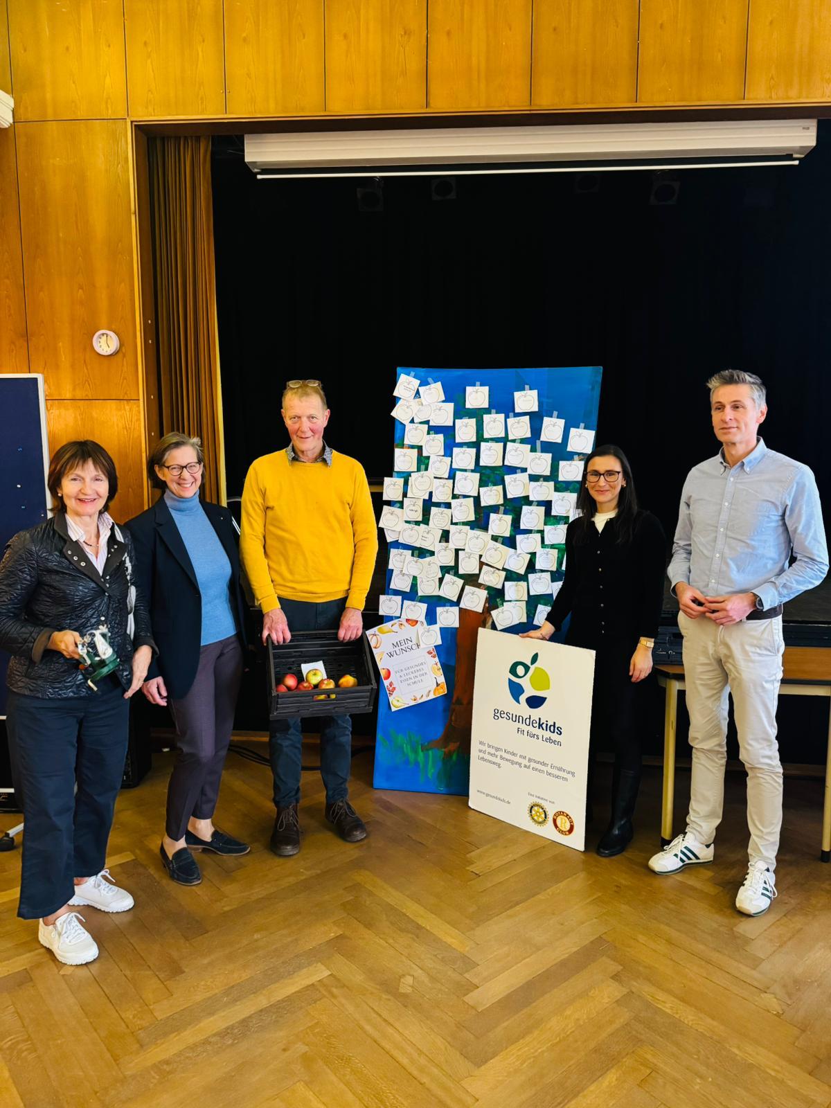 Wir freuten uns sehr, dazu auch Herrn Geiger vom Obstgut „Auf der Heide“ sowie Frau Dr. Hempel und Frau Dr. Link vom Rotary Club begrüßen zu dürfen. Frau Dr. Hempel und Herr Geiger betonten in ihren kurzen Ansprachen, wie wichtig gesunde Ernährung und regionale Kooperationen für Schulen sind.