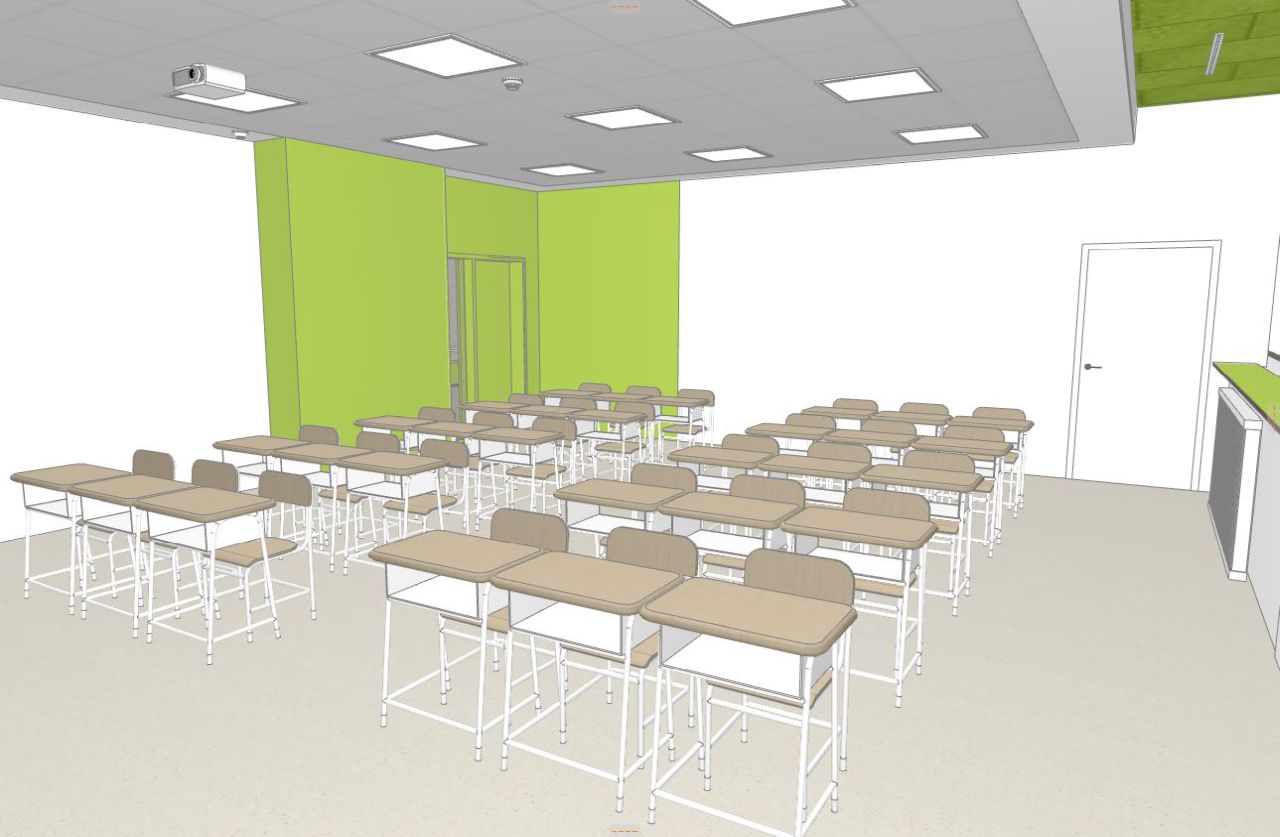 Neben notwendigen Brandschutzmaßnahmen und der Modernisierung aller Räume sowie der Neukonzeption der Chemieräume entsteht ein Neubau mit zusätzlichen Klassen- und Differenzierungsräumen, die im bisherigen Bestand fehlen.
