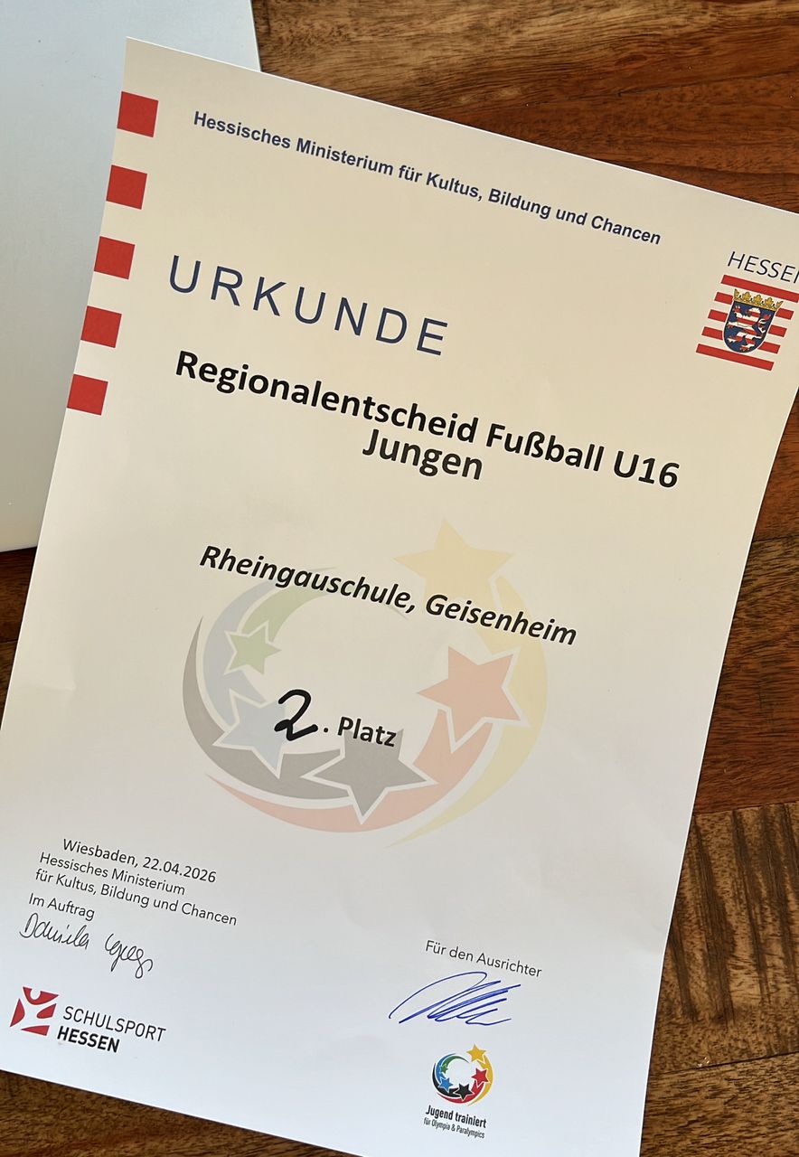 Nach dem triumphalen Sieg im Kreisentscheid wartete am 22. April die nächste große Herausforderung auf unsere Schulmannschaft der Jahrgänge 2012 bis 2014: Der Regionalentscheid auf der Sportanlage Rheinhöhe in Wiesbaden.