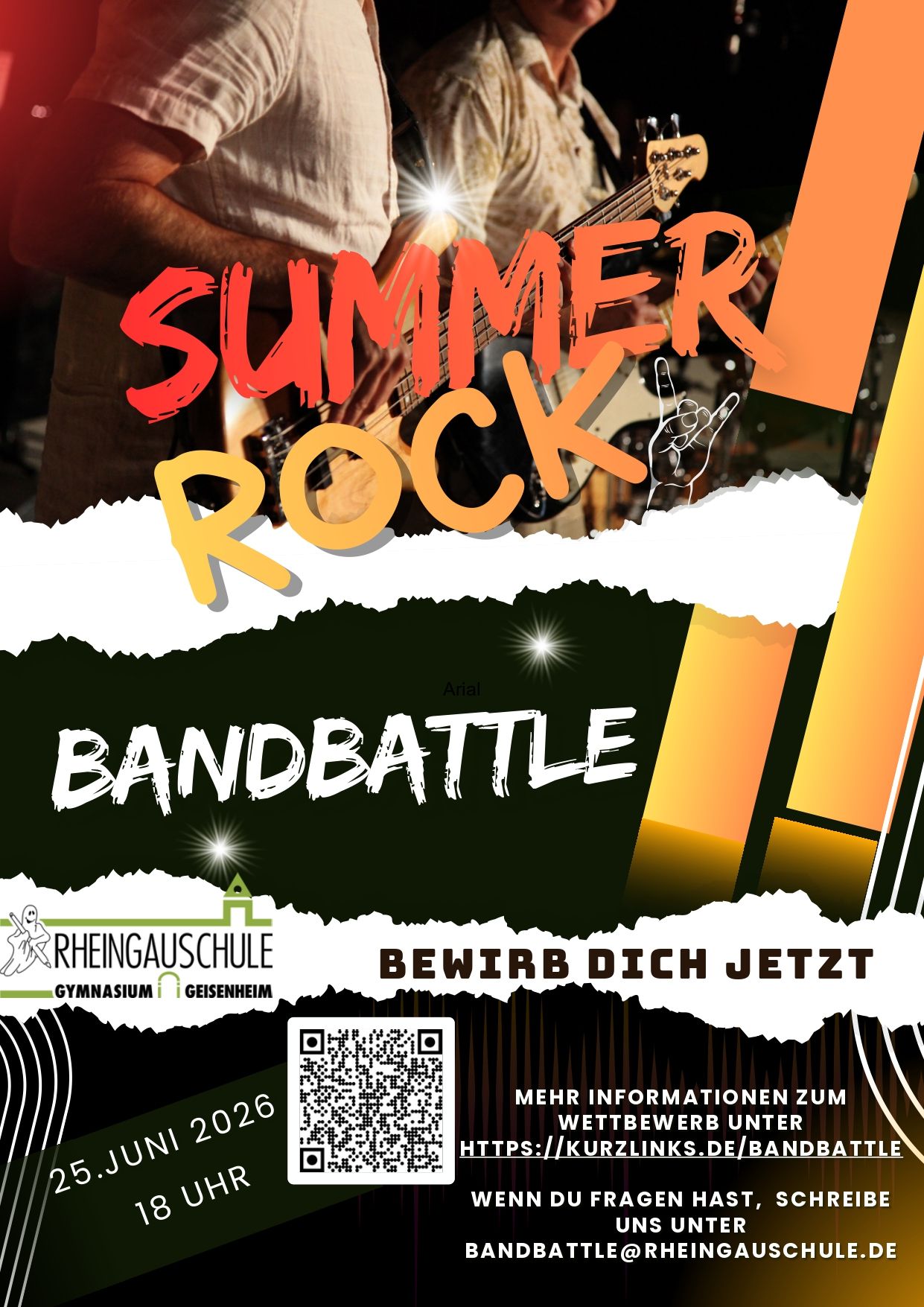 Am 25. Juni 2026 lädt der WPU-Kurs Rockband der Rheingauschule zum spannenden Bandbattle ein. Von 18:00 bis 22:00 Uhr dürfen alle Schülerbands der Region ihr Können zeigen.